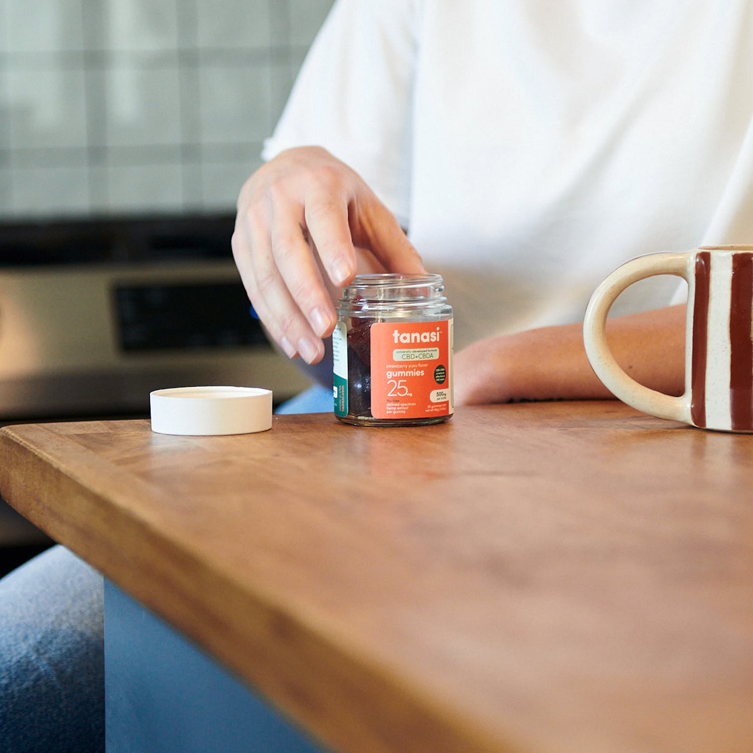 Try one dose after breakfast and see how you feel. CBD+CBDA has calming effects that are beneficial to some users throughout the day. They use it to take the edge off, ease mental tension, and calm the mind to help concentration.